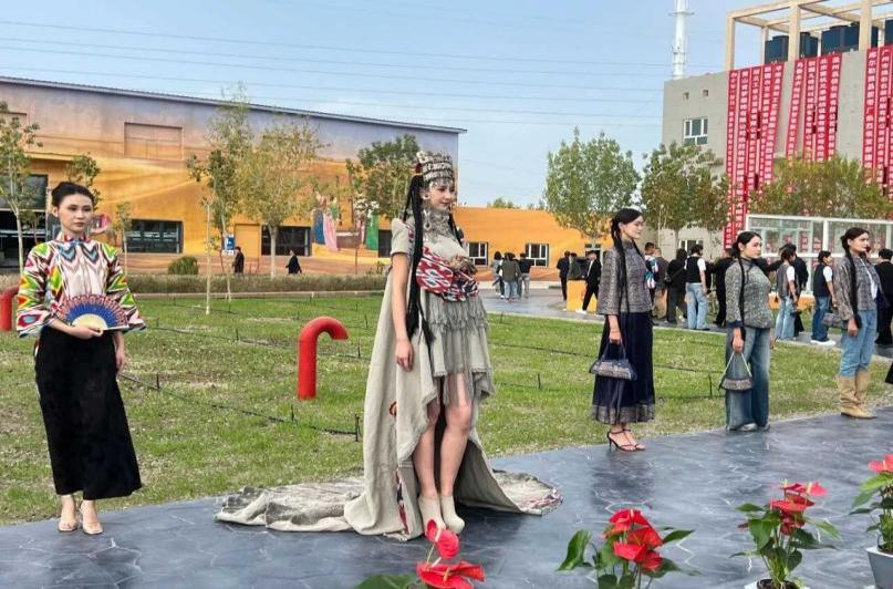 仪式落幕,服装走秀随即登场,巴音郭楞职业技术学院12名学生模特,身着自主设计服饰,以专业台步与自信风采,淋漓尽致展现设计理念与工艺水准。作品融新疆地域文化与现代时尚,既映现院校教学成果,也让嘉宾窥见纺织服装产业未来人才潜力,赢得满堂掌声。