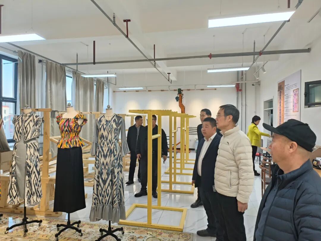考察团一行首先来到纺织技术实训区。专业教师介绍了设备的功能和操作方法,以及学院在纺织技术研发和创新方面的成果。随后,来到服装工艺实训区。陈列的设计作品,从融合民族元素的传统服饰,到紧跟国际潮流的现代时装,展现出纺织服装学院在时尚设计领域的前沿探索。最后,考察团一行参观了非遗工作室及虚拟仿真实训室,非遗技艺与现代服装设计相结合的作品,让协会成员感受到传统文化与产业发展的深度融合,考察团对基地的标准化教学与行业需求对接度给予肯定。