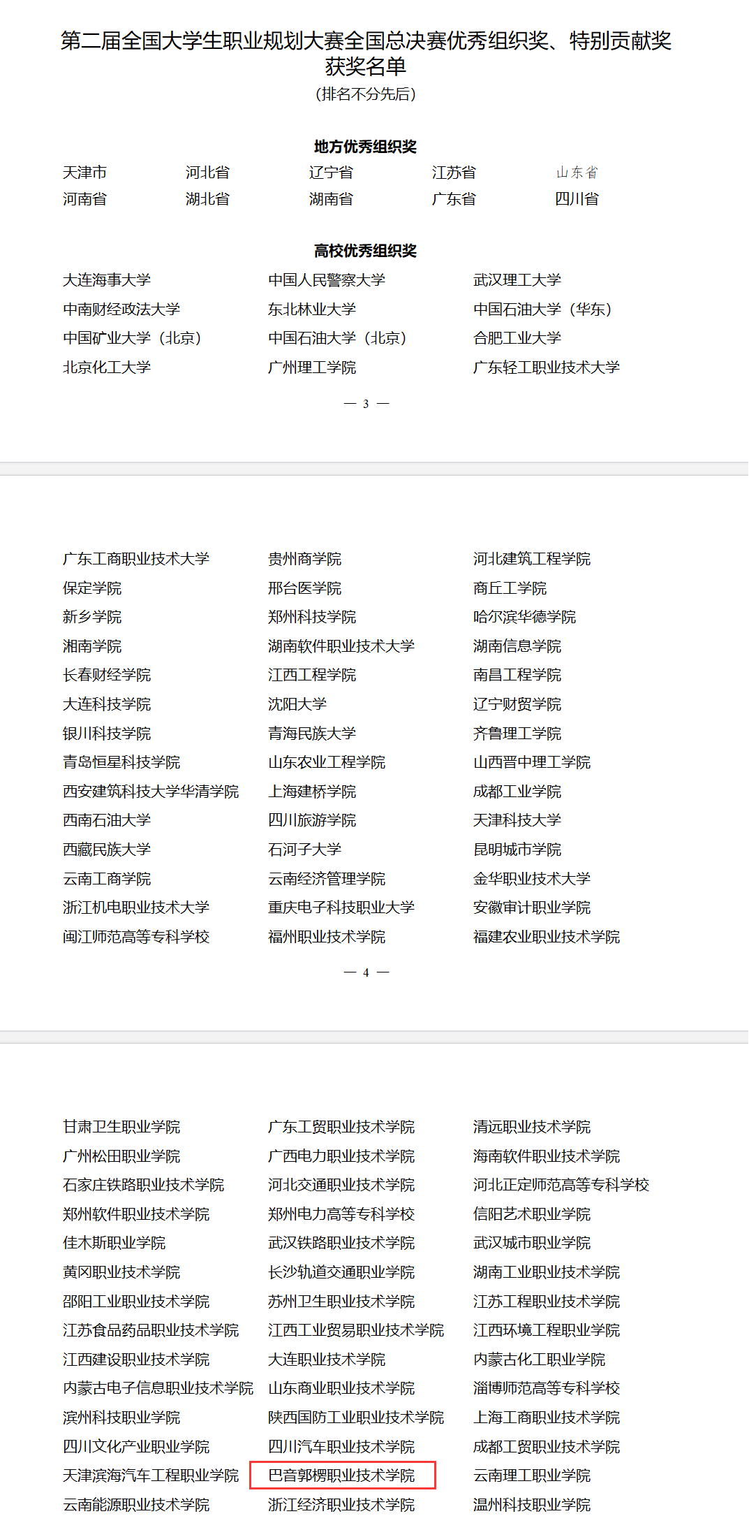 近日,教育部正式公布第二届全国大学生职业规划大赛全国总决赛获奖名单,巴音郭楞职业技术学院凭借在大赛组织工作中的突出表现与扎实成效,获全国“高校优秀组织奖”,这是教育部对学院职业生涯教育、就业指导工作及大赛组织能力的高度认可!